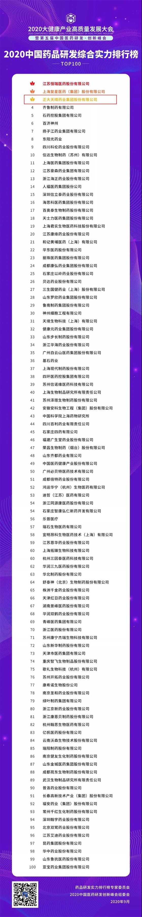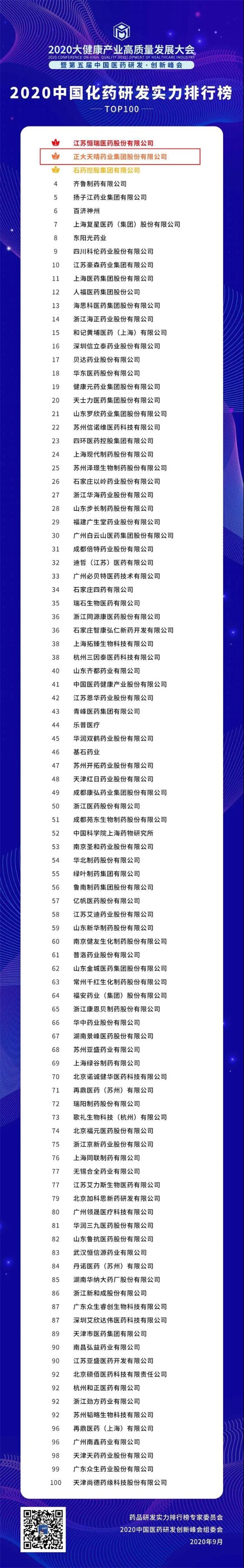 9月10日,頒布了備受業(yè)內(nèi)關(guān)注的《2020中國藥品研發(fā)實力排行榜》榜單。中國生物制藥旗下的正大天晴連續(xù)五年榮登“中國藥品研發(fā)綜合實力排行榜TOP100”、“中國化藥研發(fā)實力排行榜TOP100”前三甲。